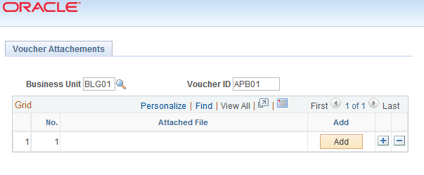 Note 2: In the peoplecode, GUID was placed at the beginning of the filename to create the ATTACHSYSFILENAME to have a unique system file name. This will allow two VOUCHER_ID to have attachments with the same user filenames but different contents as they will have but different system filenames. For example voucher 101 can have an attachment invoice.pdf containing the image of an invoice for voucher 101 while voucher 102 can have an attachment with the same name invoice.pdf containing the image of an invoice for voucher 102. There will be no conflict as the system file name will be different. I will show you this part with an example when I add an attachment to Voucher APB02.