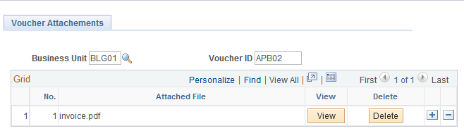 The attached file is now displayed in the grid. The View and Delete buttons are visible now.