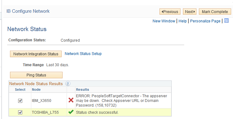 Since we are using the userid VP1, we did not get any permission issue. If you get an error message that PS user not authorized to invoke Service Operation GETNETWORKSTATUS (158,536), please make sure user has access to permission list PTPT4000.
