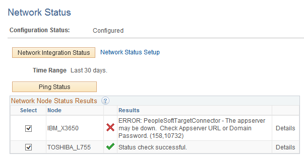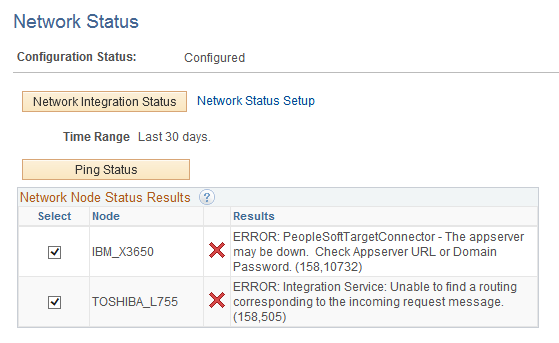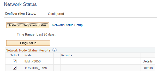 A successful ping indicates that you have correctly defined the selected remote PeopleSoft nodes in the integration network and that the local system can connect to them. A successful ping also indicates that the PeopleSoft integration partners represented by the remote nodes have correctly defined your node as part of their integration.
