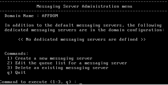 You will be at the Domain Administration menu again. Select option 7 for Messaging Server Administration menu.