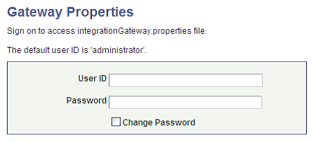 Come back to the Integration Network WorkCenter. Click the Gateway Setup Properties link. Enter the gateway user ID and password that were set up during the PIA installation process.